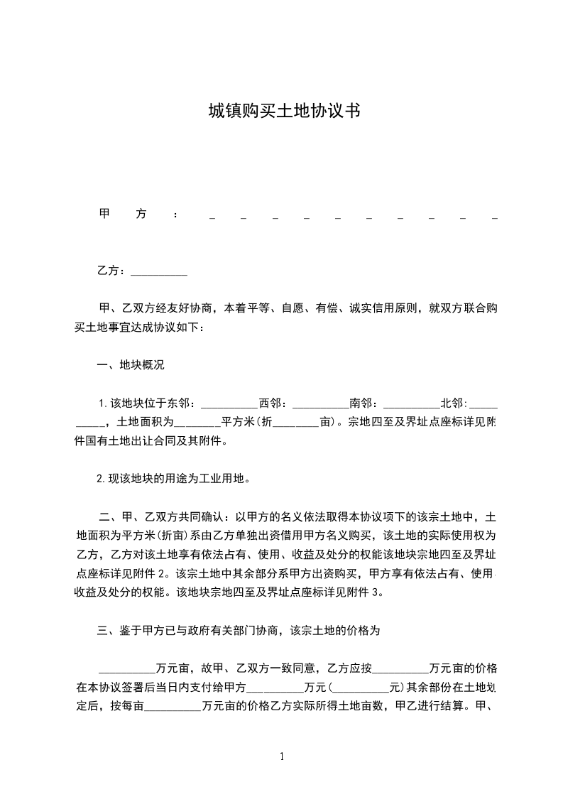 甲、乙双方经友好协商,本着平等、自愿、有偿、诚实信用原则,就双方联合购买土地事宜达成协议如下: