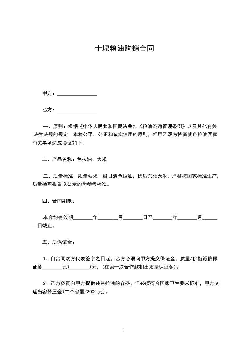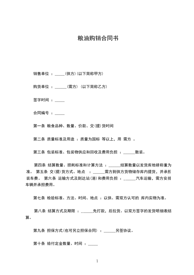 甲、乙双方根据国家粮油购销管理政策,在平等、自愿、合作、互利的原则下,经充分协商,达成如下协议。