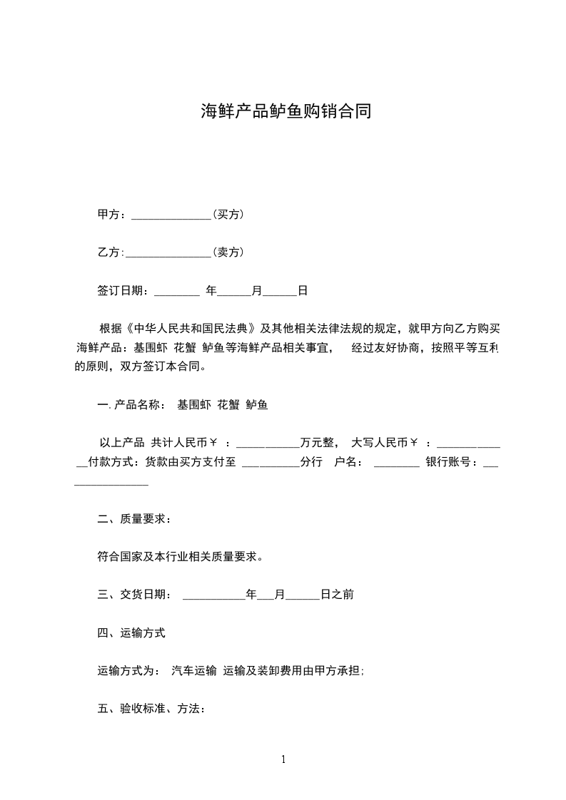 根据《中华人民共和国民法典》及其他相关法律法规的规定,就甲方向乙方购买海鲜产品:基围虾 花蟹 鲈鱼等海鲜产品相关事宜, 经过友好协商,按照平等互利的原则,双方签订本合同。