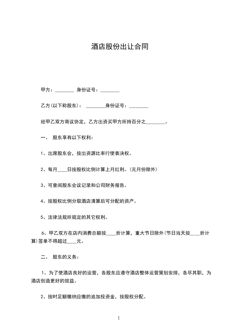 一、转让方将其在__________________公司(以下简称公司)_______%的股份(人民币_________元)依法转让给受让方。