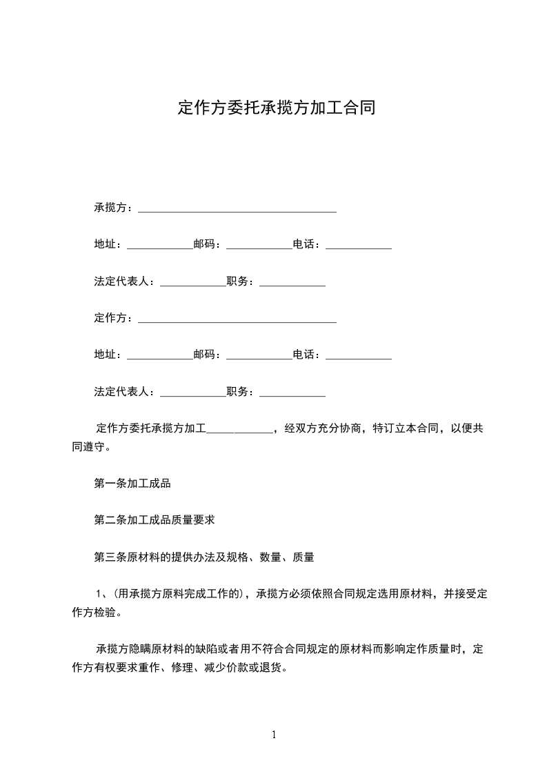 承揽方:________________________ 代表人:________________________ ____年____月____日