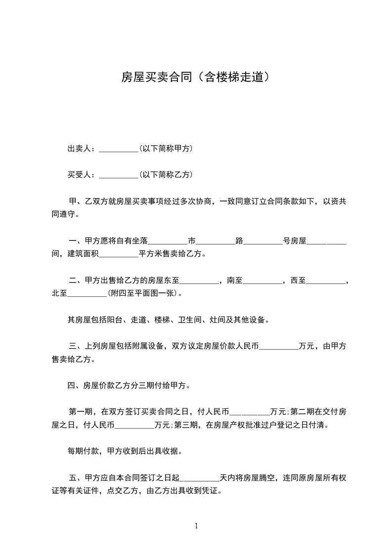 一、甲方愿将自有坐落__________市__________路__________号房屋__________间,建筑面积__________平方米售卖给乙方。