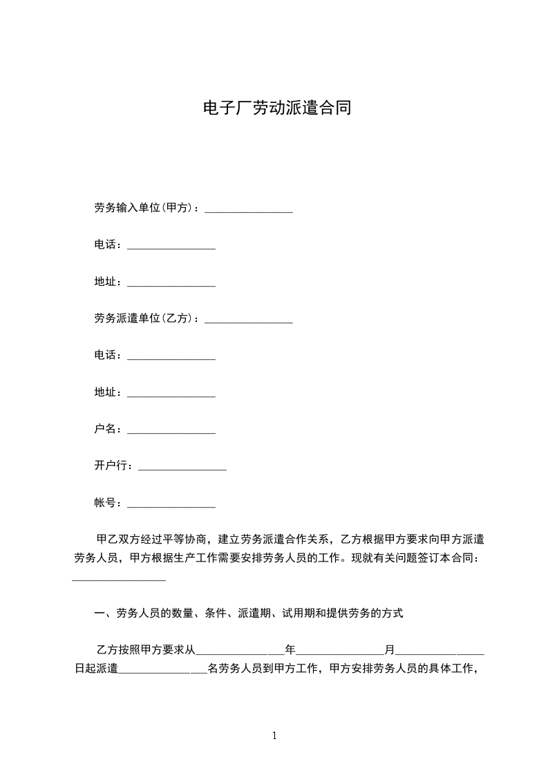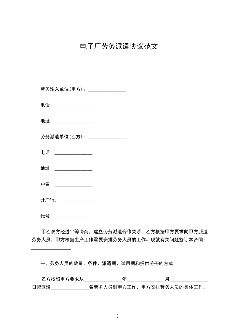 电子厂劳动派遣协议书