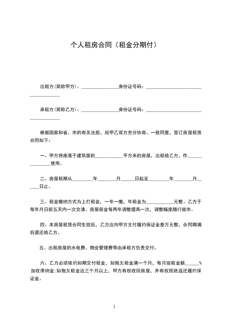 承租方(简称乙方):________________身份证号码:_____________________________________