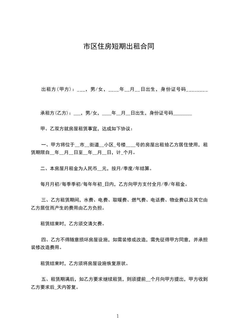 一、甲方将座落在_______市区路(村)街(坊)号的房屋,建筑面积2,(房厅或间)出租给乙方,作使用。