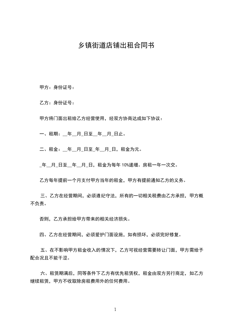 _年__月_日至__年__月_日,租金为每年10%递增。房租一年一次交。