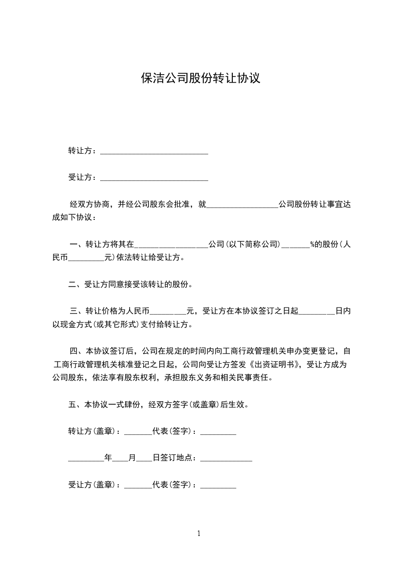 保洁公司股份出让协议书