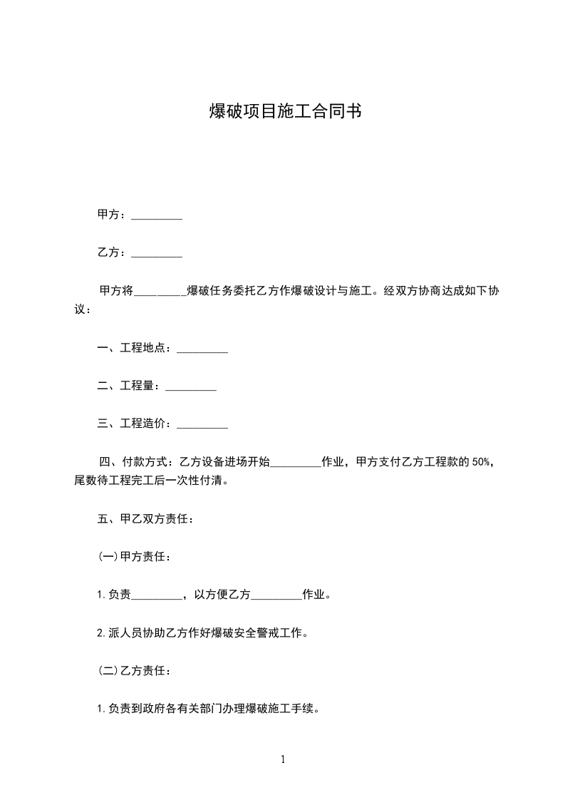 甲方将_________爆破任务委托乙方作爆破设计与施工。经双方协商达成如下协议: