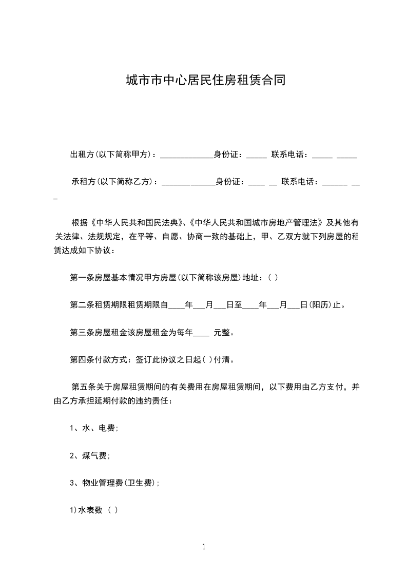 五、乙方租赁期间,水费、电费、电视费、电话费、物业费以及其它由乙方居住而产生的费用由乙方负担。