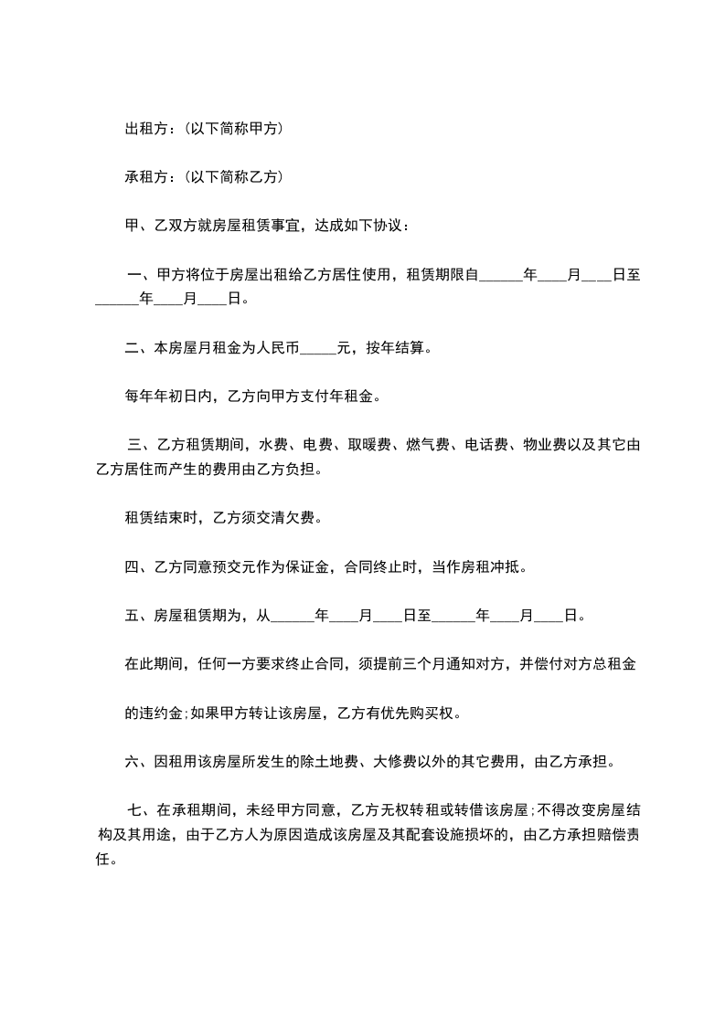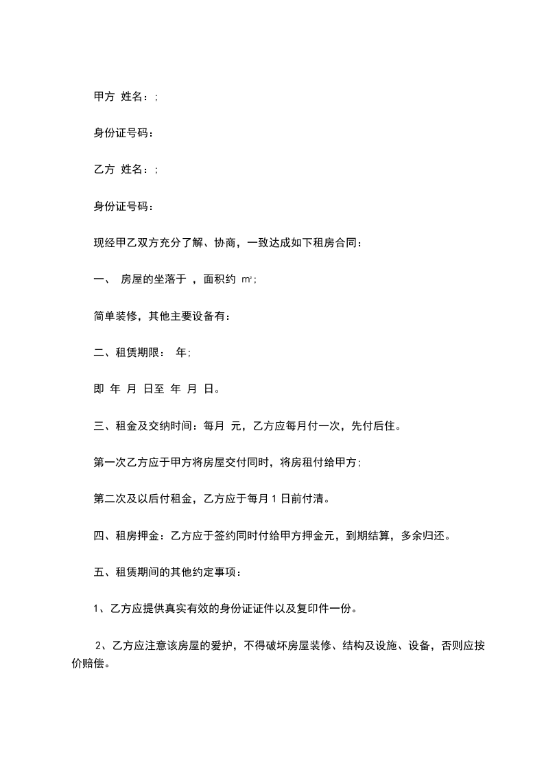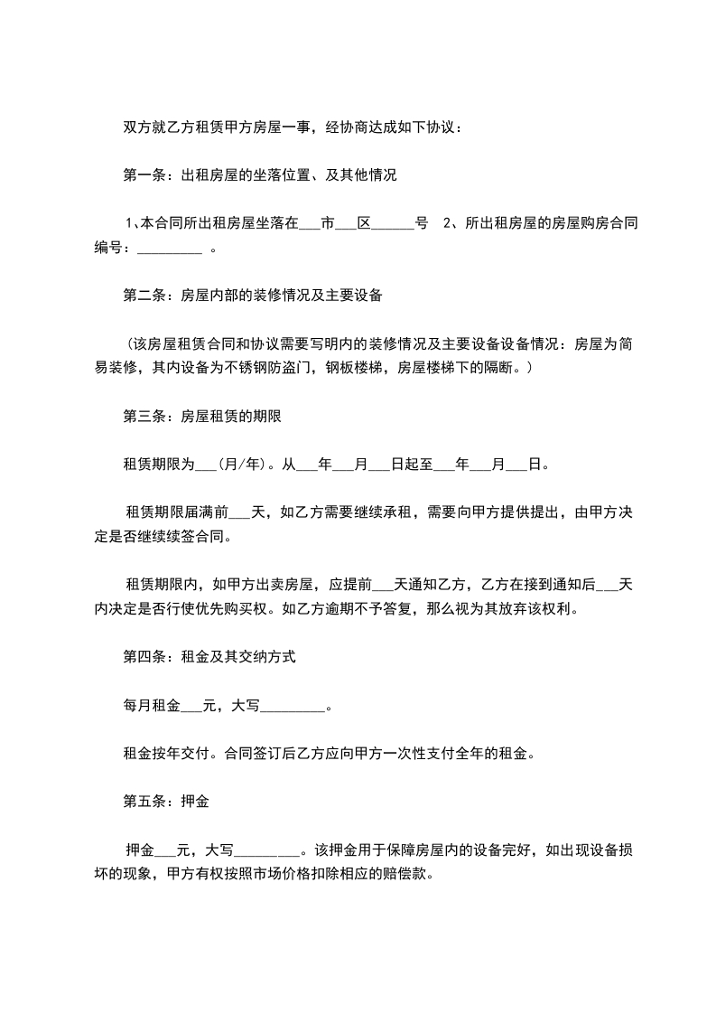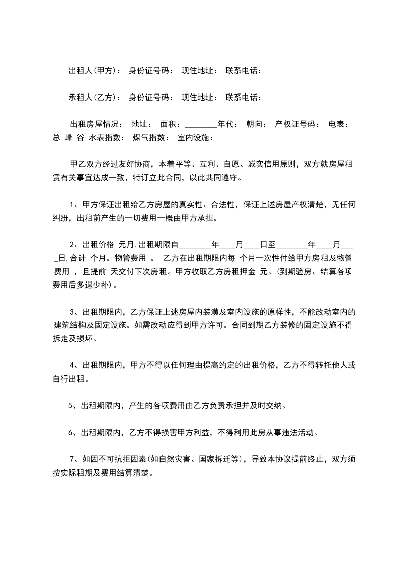 现经甲乙双方充分了解、协商,一致达成如下租房合同: