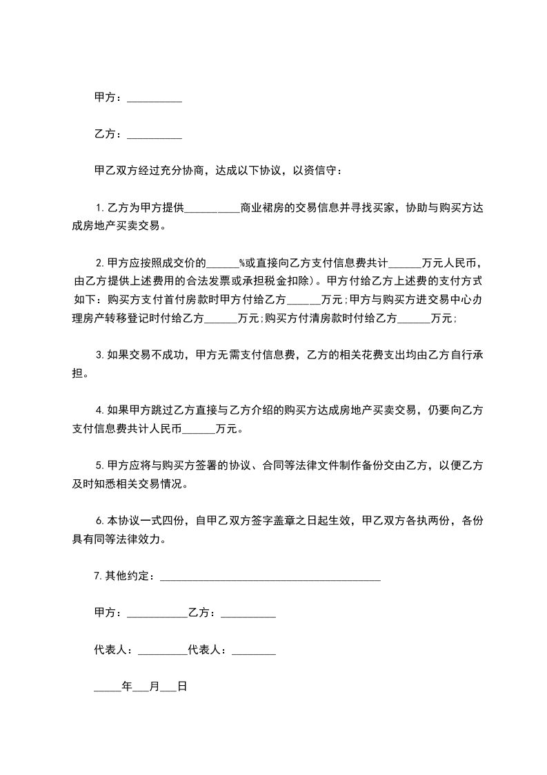 1.乙方为甲方提供__________商业裙房的交易信息并寻找买家,协助与购买方达成房地产买卖交易。
