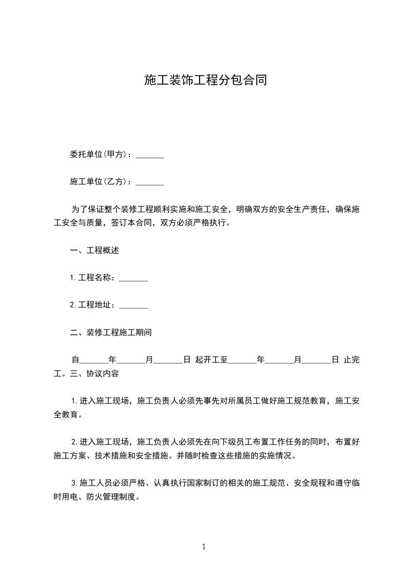 为了保证整个装修工程顺利实施和施工安全,明确双方的安全生产责任,确保施工安全与质量,签订本合同,双方必须严格执行。