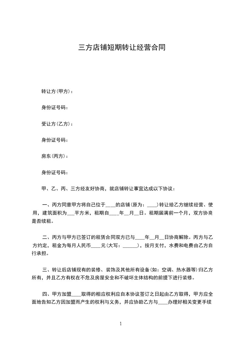 甲乙双方经友好协商,就店铺转让达成下列协议,并共同遵守: