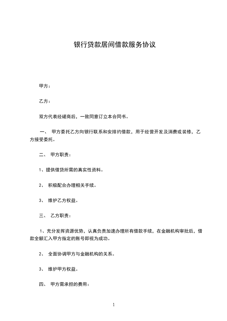 一、 甲方委托乙方向银行联系和安排约借款,用于经营开发及消费或装修,乙方接受委托。