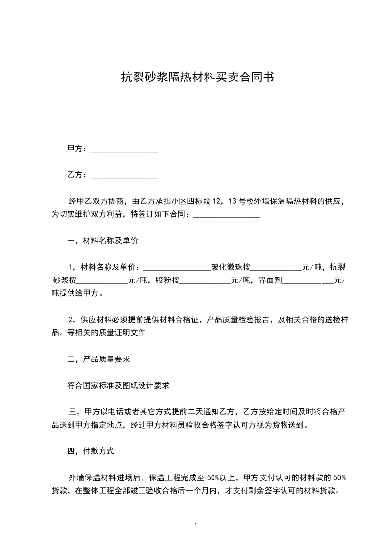 1,材料名称及单价:_________________玻化微珠按_____________元/吨,抗裂砂浆按_____________元/吨,胶粉按_____________元/吨,界面剂_____________元/吨提供给甲方。