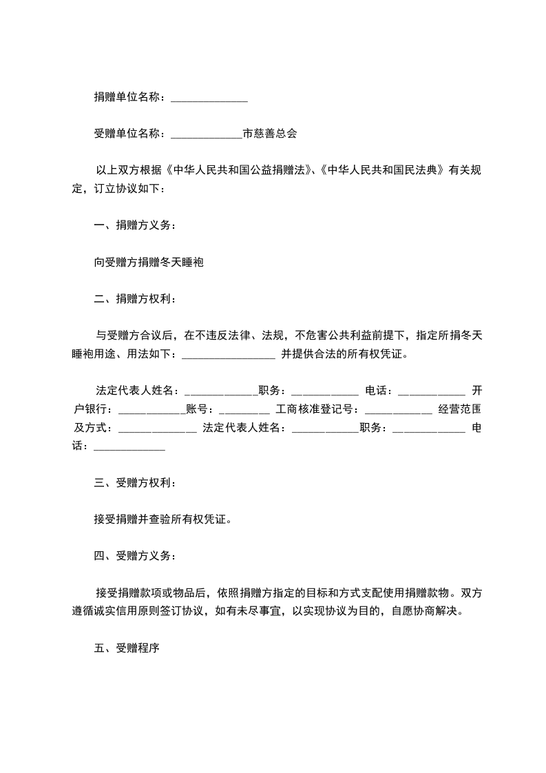 与受赠方合议后,在不违反法律、法规,不危害公共利益前提下,指定所捐冬天睡袍用途、用法如下:_________________ 并提供合法的所有权凭证。