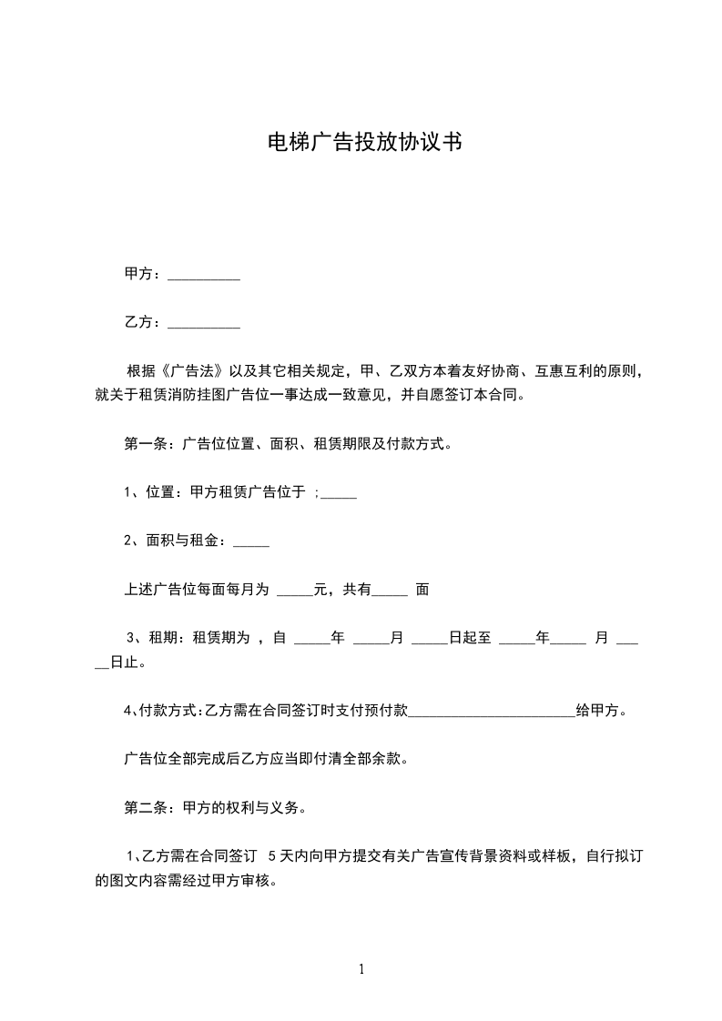根据《广告法》以及其它相关规定,甲、乙双方本着友好协商、互惠互利的原则,就关于租赁消防挂图广告位一事达成一致意见,并自愿签订本合同。