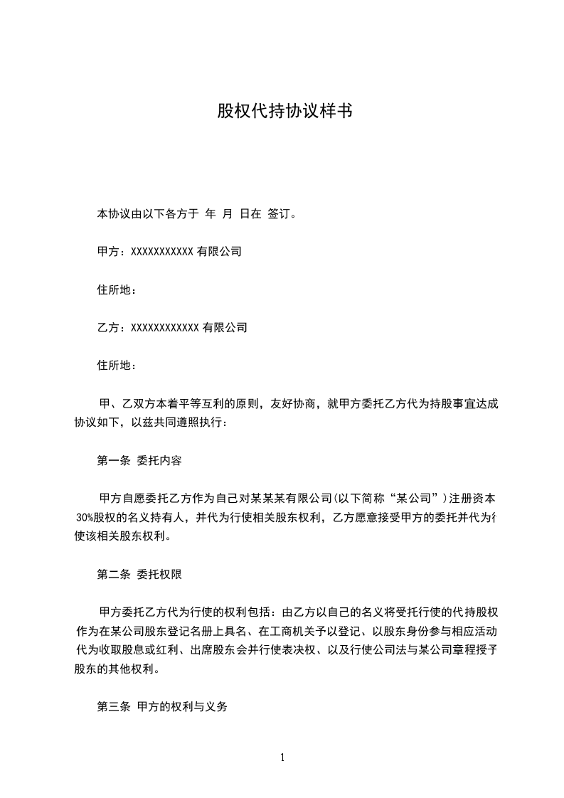 甲、乙双方本着平等互利的原则,友好协商,就甲方委托乙方代为持股事宜达成协议如下,以兹共同遵照执行: