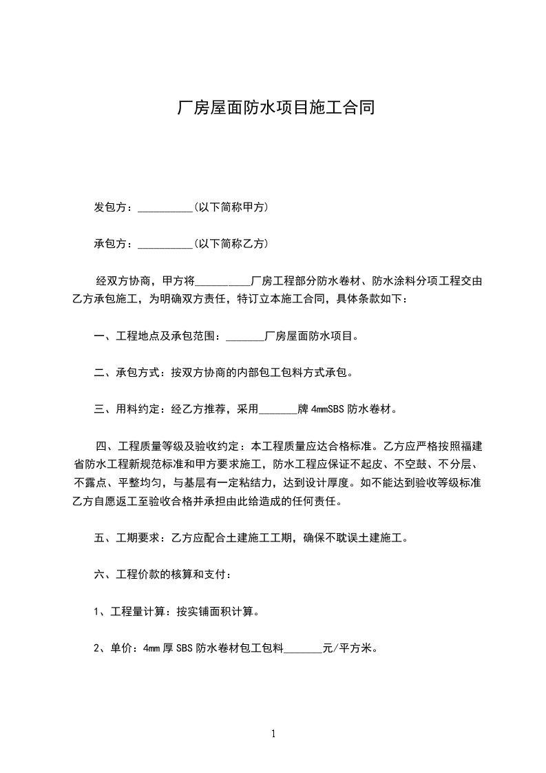 10、付款办法:在合同签订后支付合同价的30%作为预付款,竣工验收合格后一次性付清工程款。保修期一年。