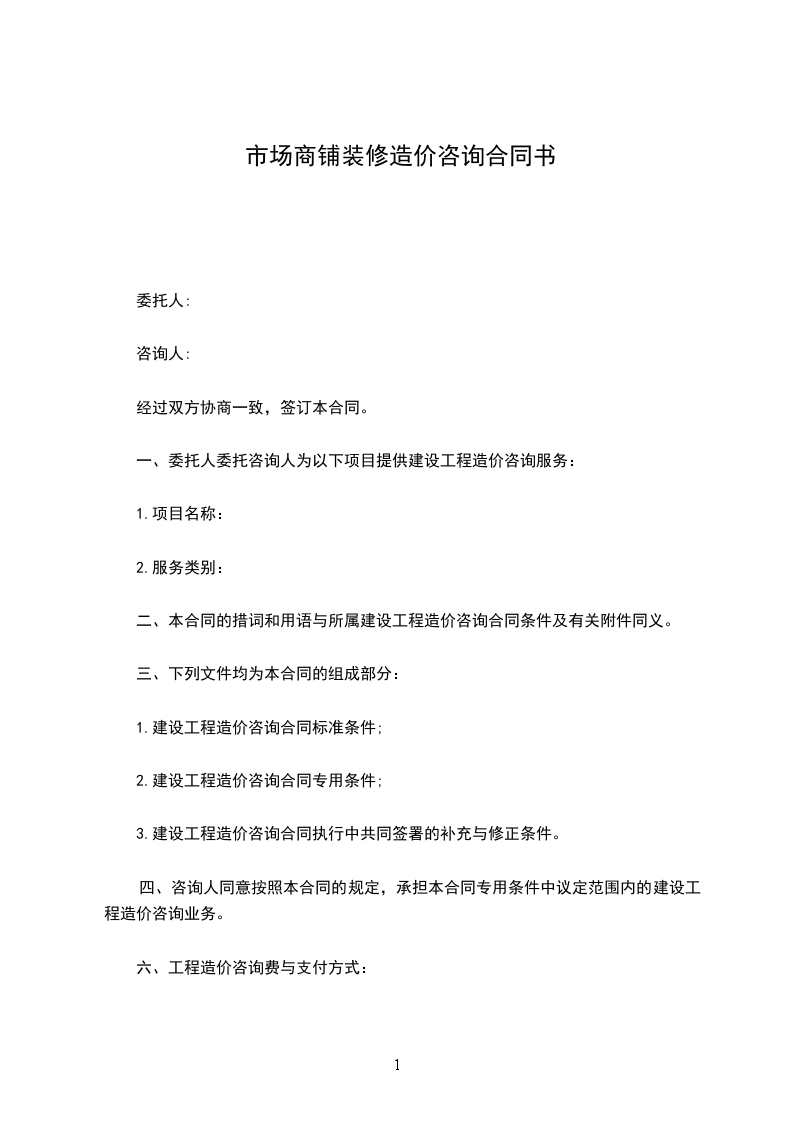 一、委托人委托咨询人为以下项目提供建设工程造价咨询服务: