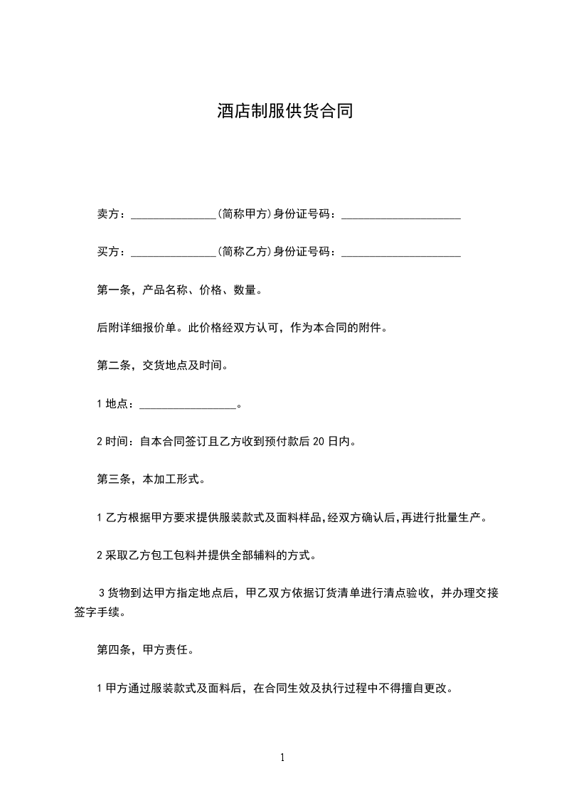 公司员工制服供货合同