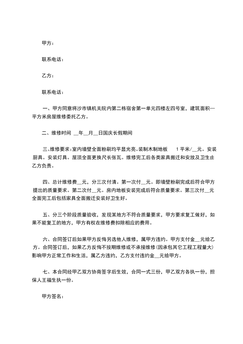 11.5保修期间:乙方应在接到甲方书面通知后,天内派人修理,否则甲方可委托其他单位或人员修理,其费用在保修费内扣除,不足部分由乙方支付。