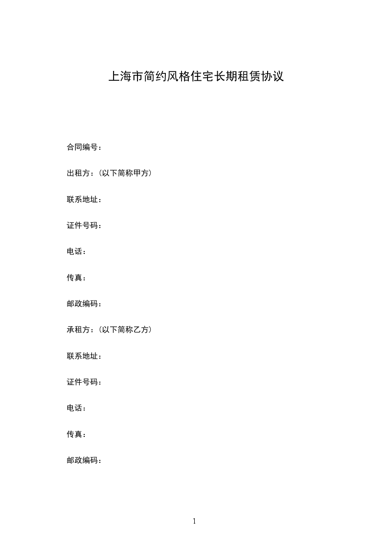上海市简约风格住宅长期租赁协议
