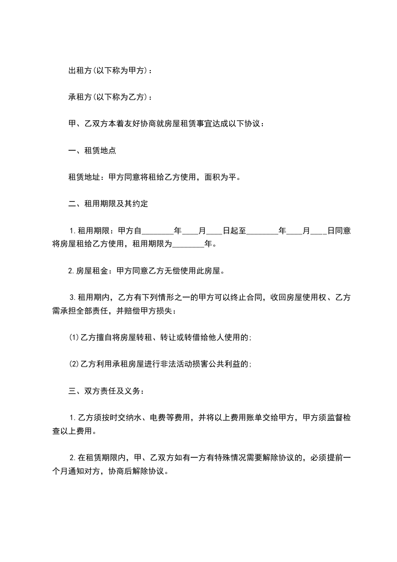 2.房屋租金:甲方同意乙方无偿使用此房屋。