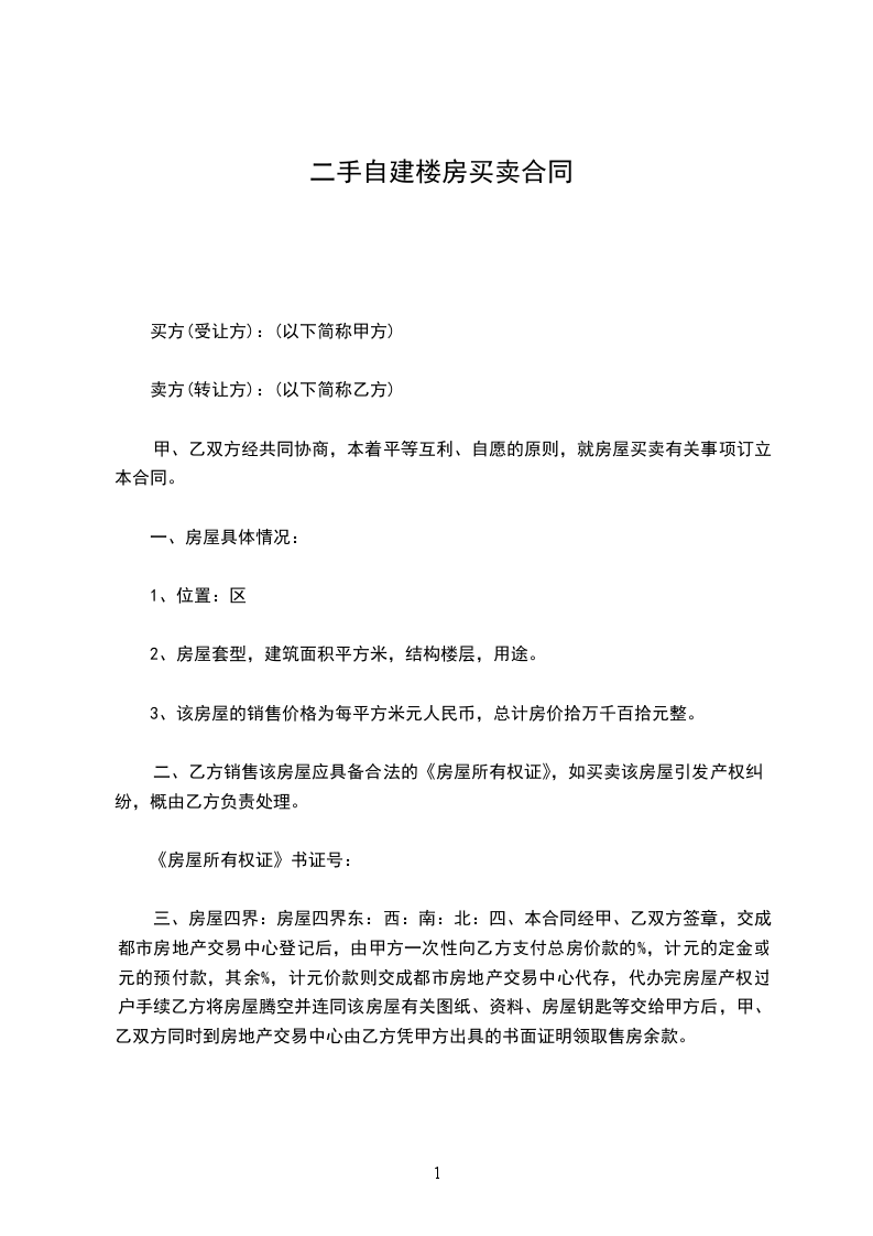 三、双方确定上述房产出售价款共计人民币(大写)万元整。乙方在合同签订、收到甲方与原卖方____签订的卖房协议等原件时,一次性将购房款支付给甲方。