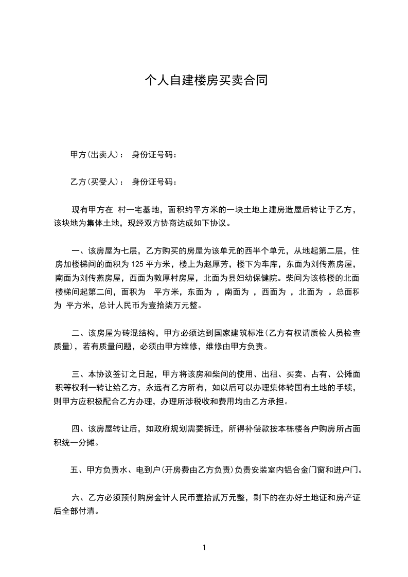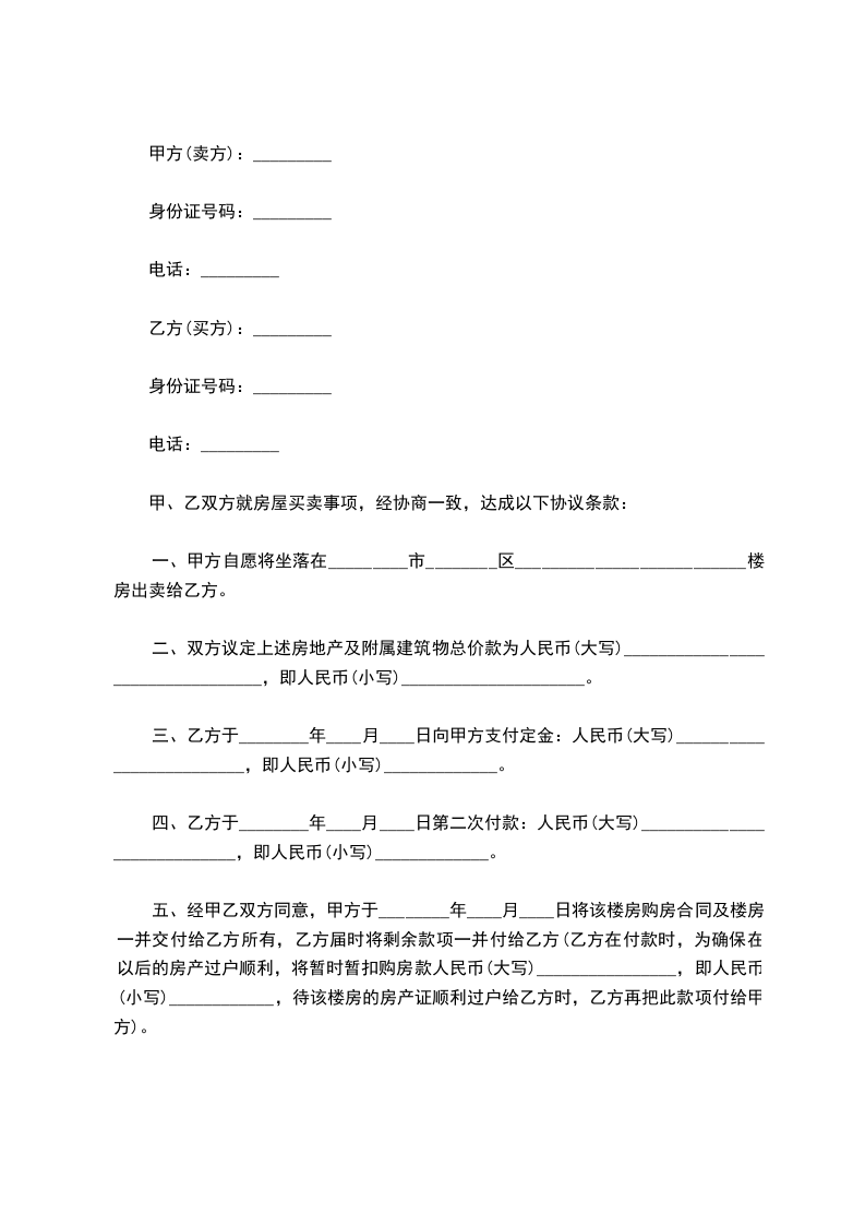 甲方(卖方):_____________身份证号:_____________________________