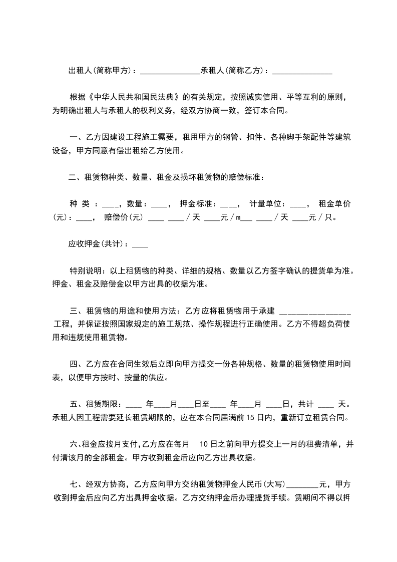 第七条、押金:架管押金每米元,扣件每套元,丝杠每支元。