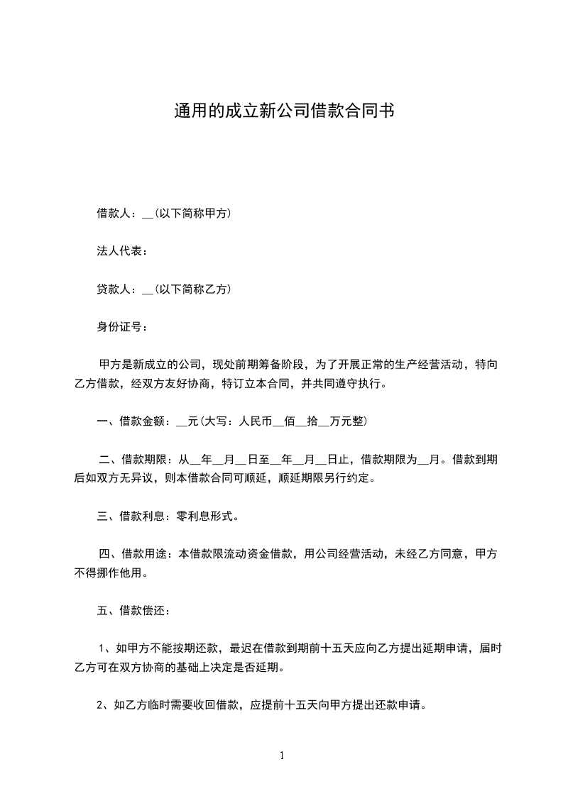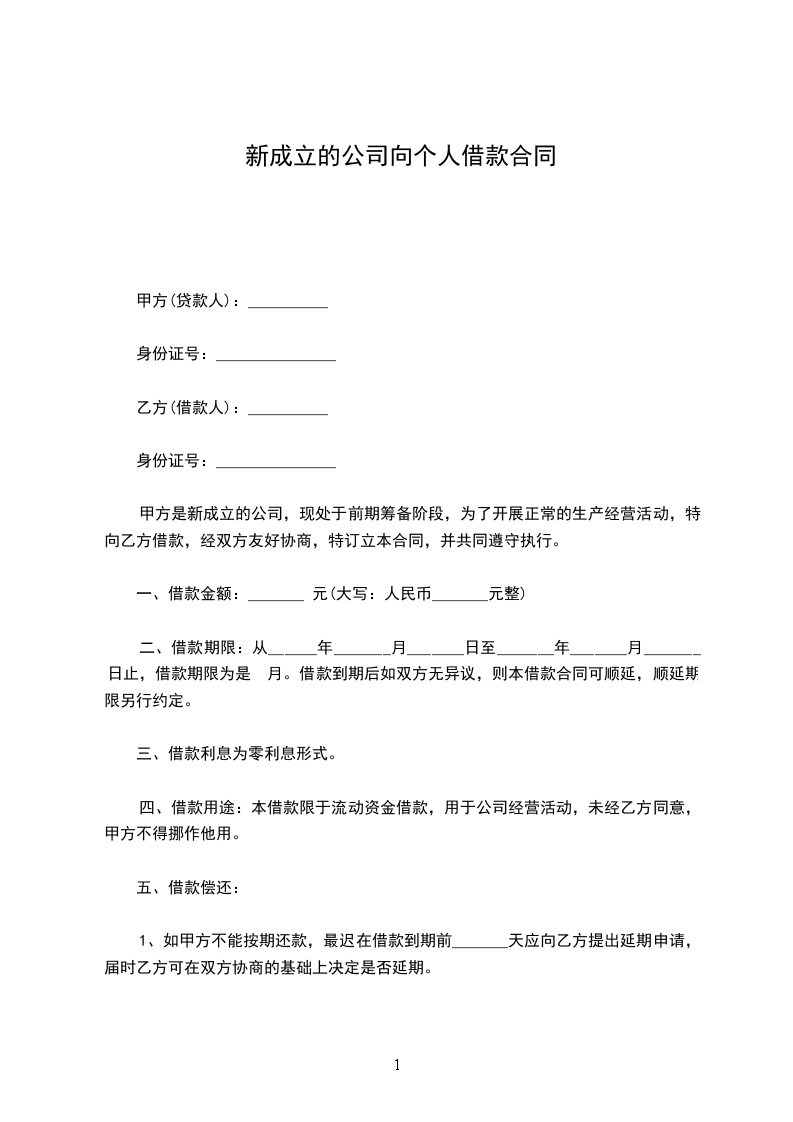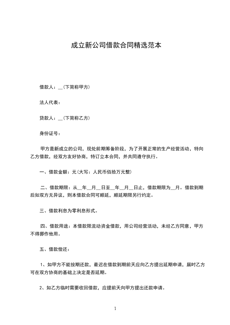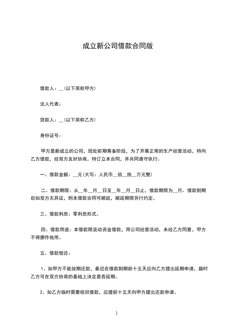 甲方是新成立的公司,现处于前期筹备阶段,为了开展正常的生产经营活动,特向乙方借款,经双方友好协商,特订立本合同,并共同遵守执行。