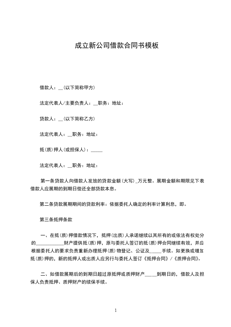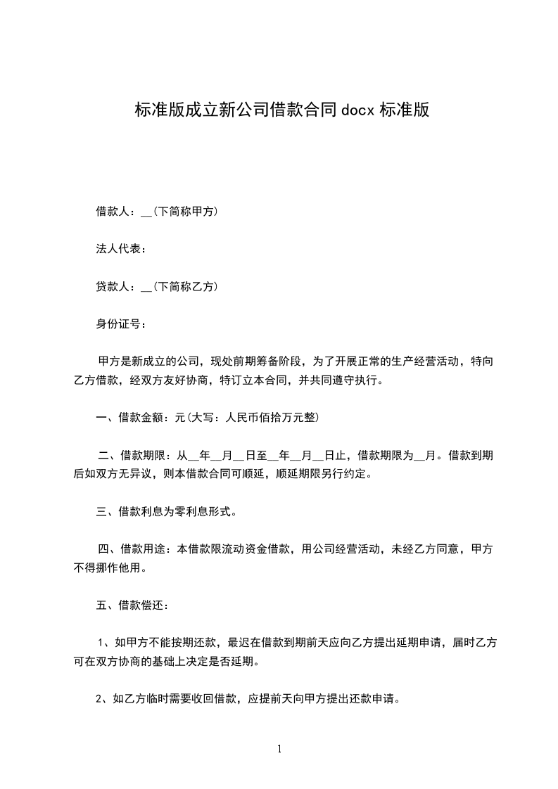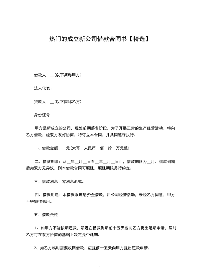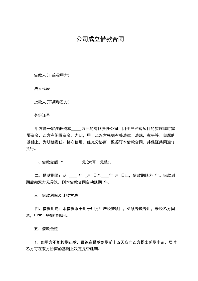 甲方是新成立的公司,现处于前期筹备阶段,为了开展正常的生产经营活动,特向乙方借款,经双方友好协商,特订立本合同,并共同遵守执行。