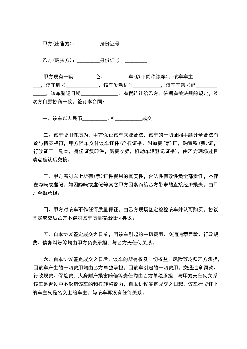 第七条: 乙方应保证交付前该车的维护正常,手续完整。