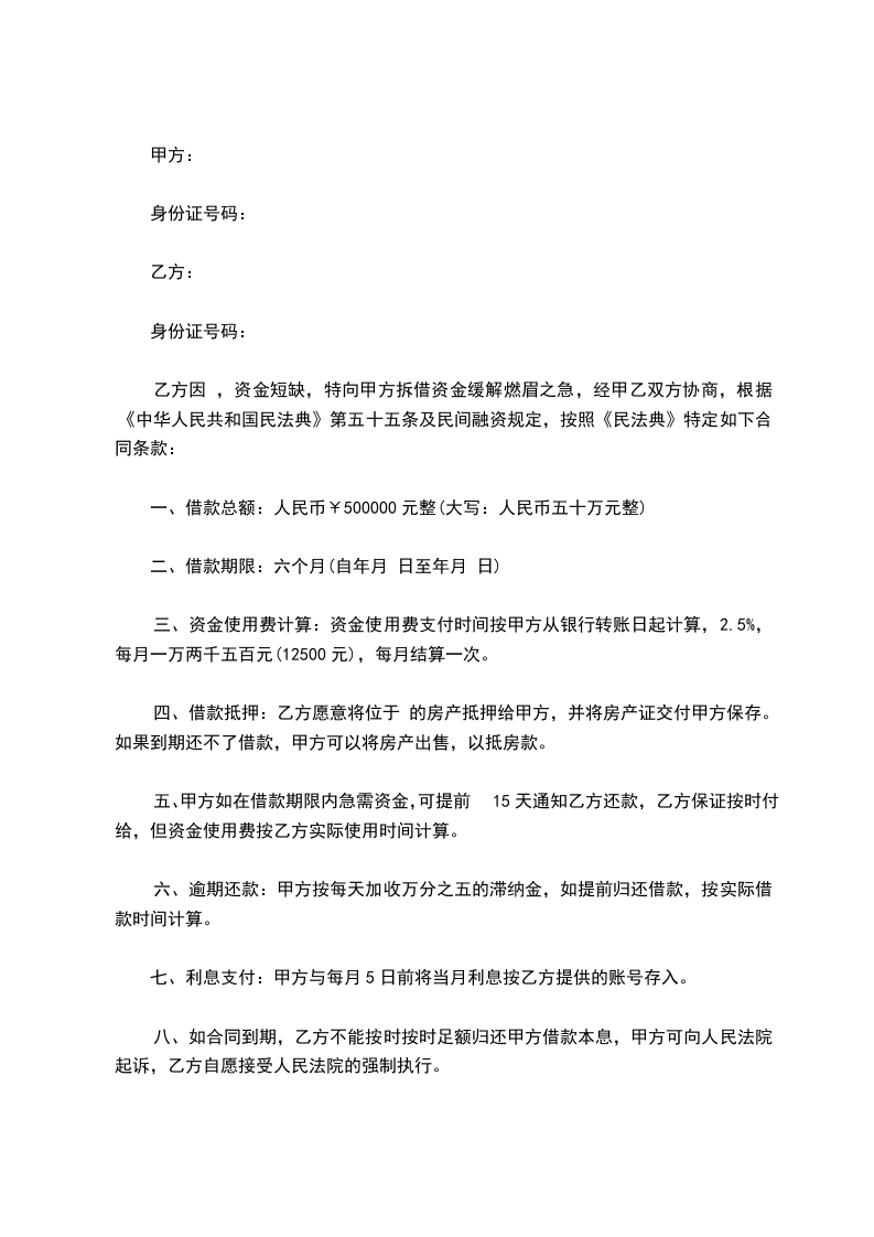 甲方(借款人): 乙方(出借人):
