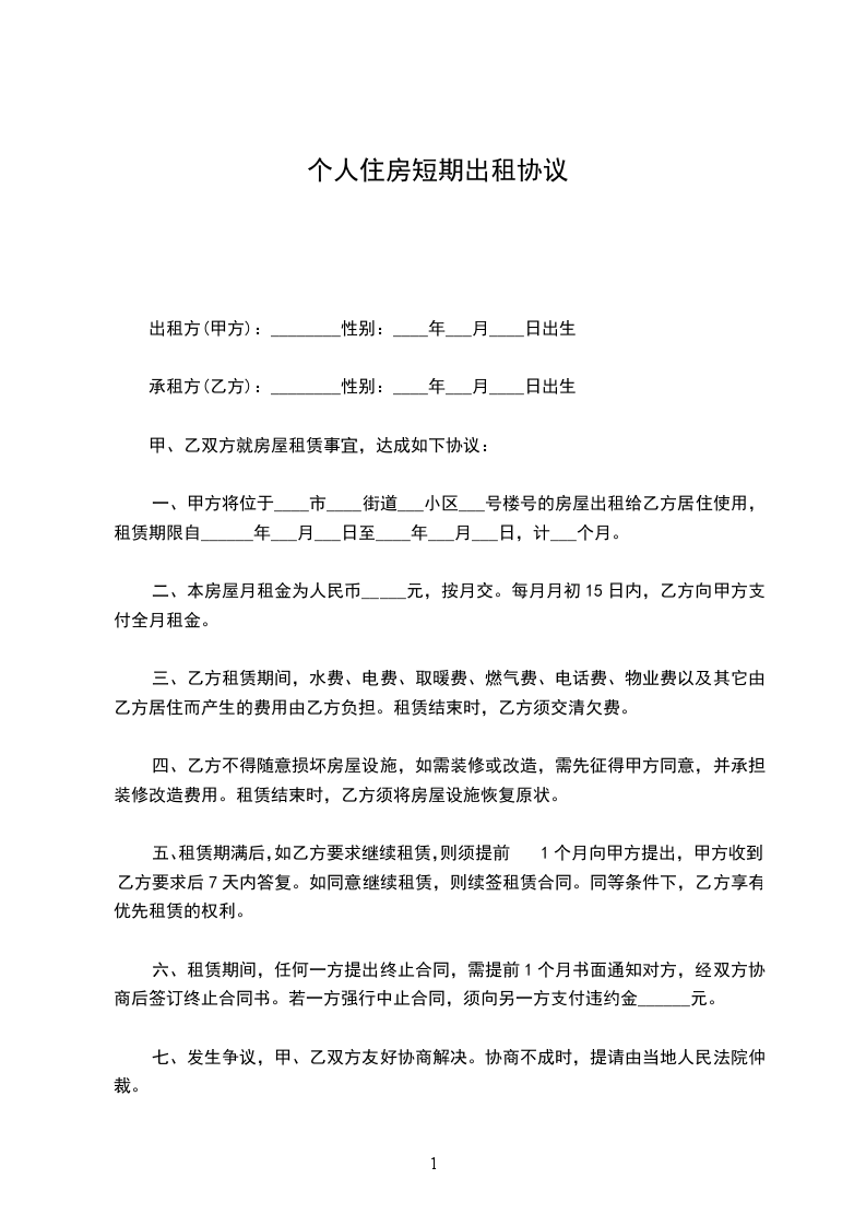 一、甲方将位于____市____街道___小区___号楼号的房屋出租给乙方居住使用,租赁期限自______年___月___日至____年___月___日,计___个月。
