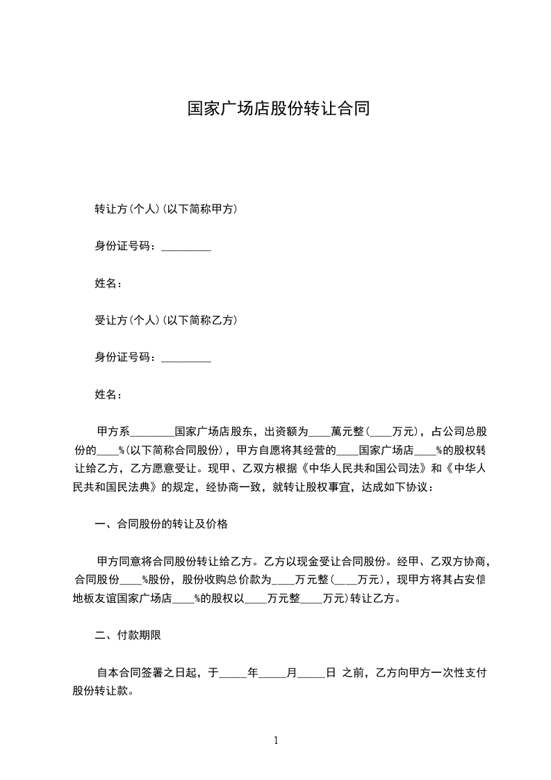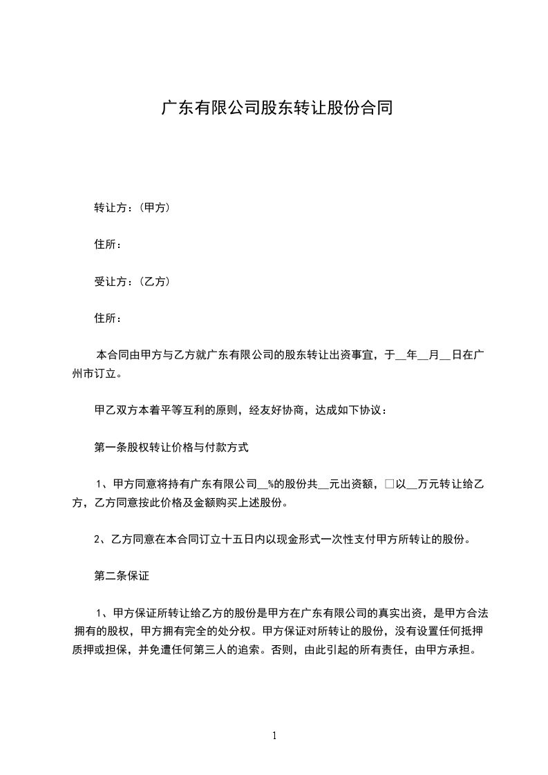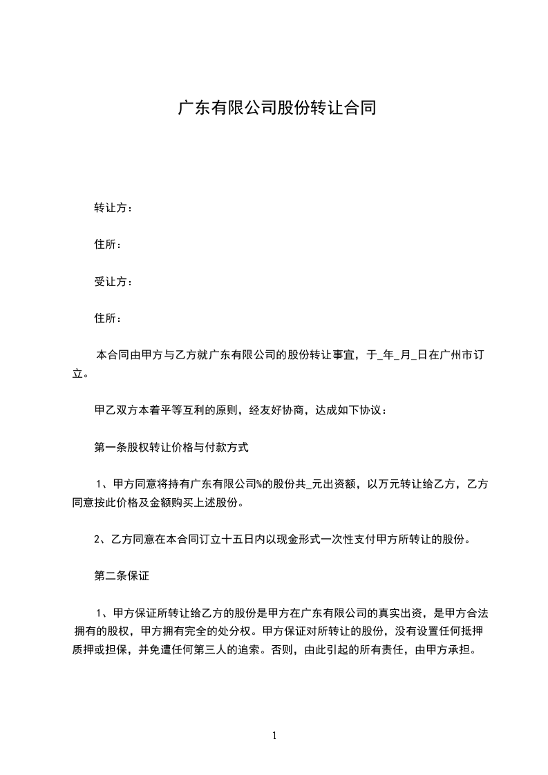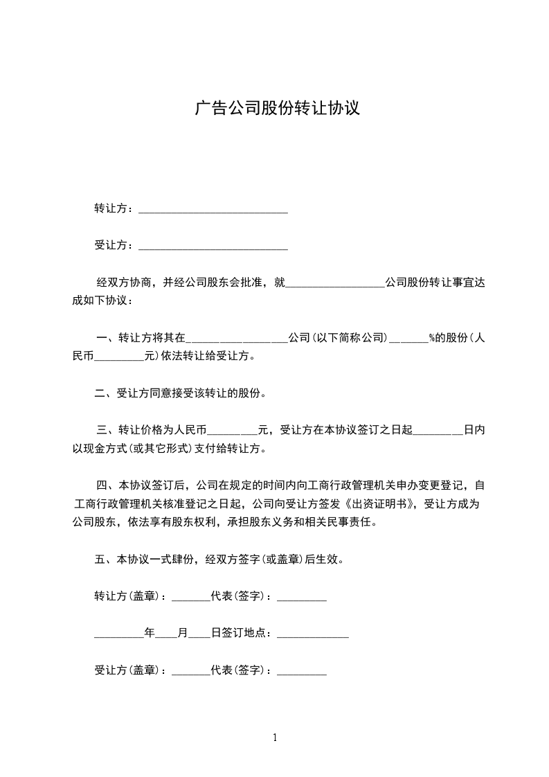 一、转让方将其在__________________公司(以下简称公司)_______%的股份(人民币_________元)依法转让给受让方。