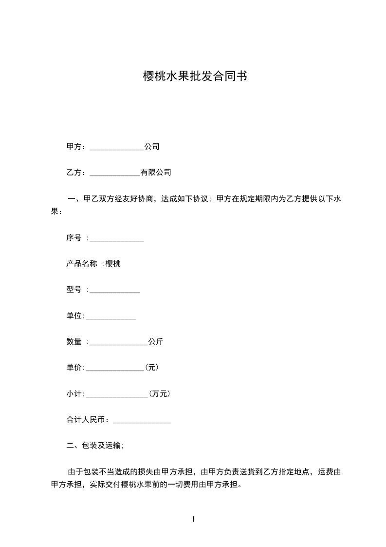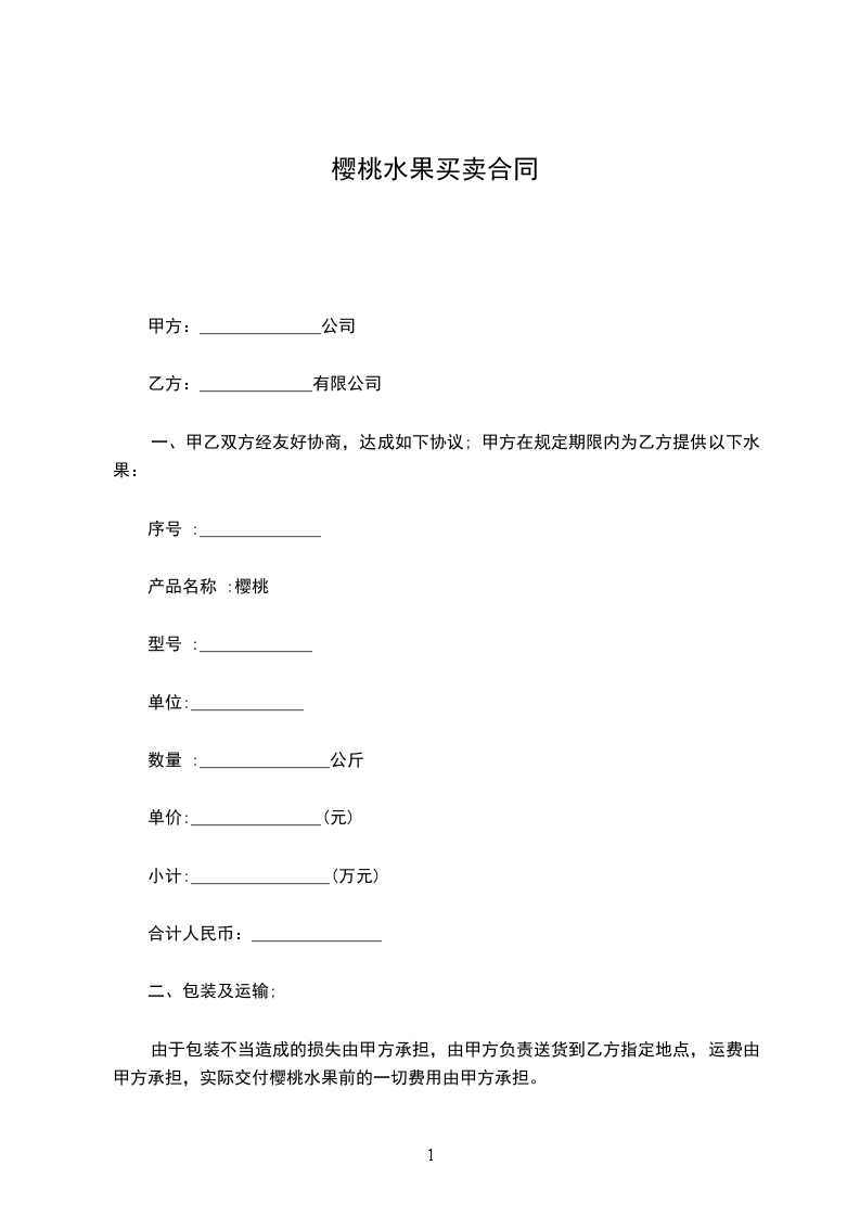 由于包装不当造成的损失由甲方承担,由甲方负责送货到乙方指定地点,运费由甲方承担,实际交付樱桃水果前的一切费用由甲方承担。