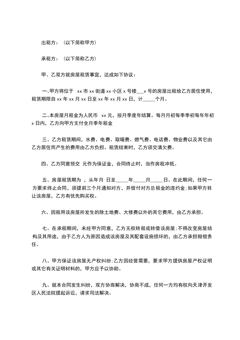 一、甲方将位于xx市xx街道xx小区x号楼___x号的房屋出租给乙方居住使用,租赁期限自xx年xx月xx日至xx年xx月xx日,计_____个月。