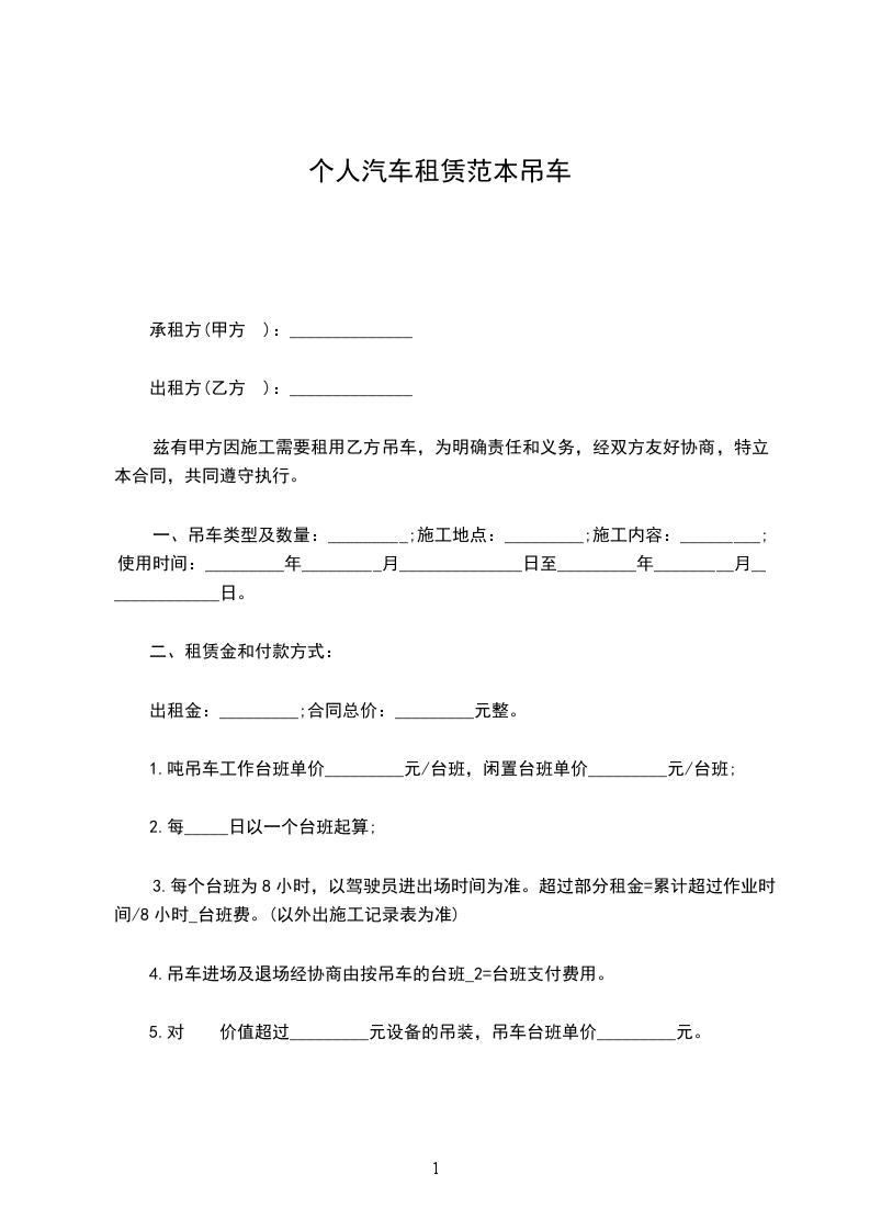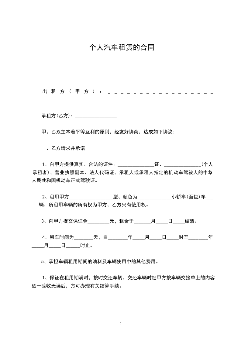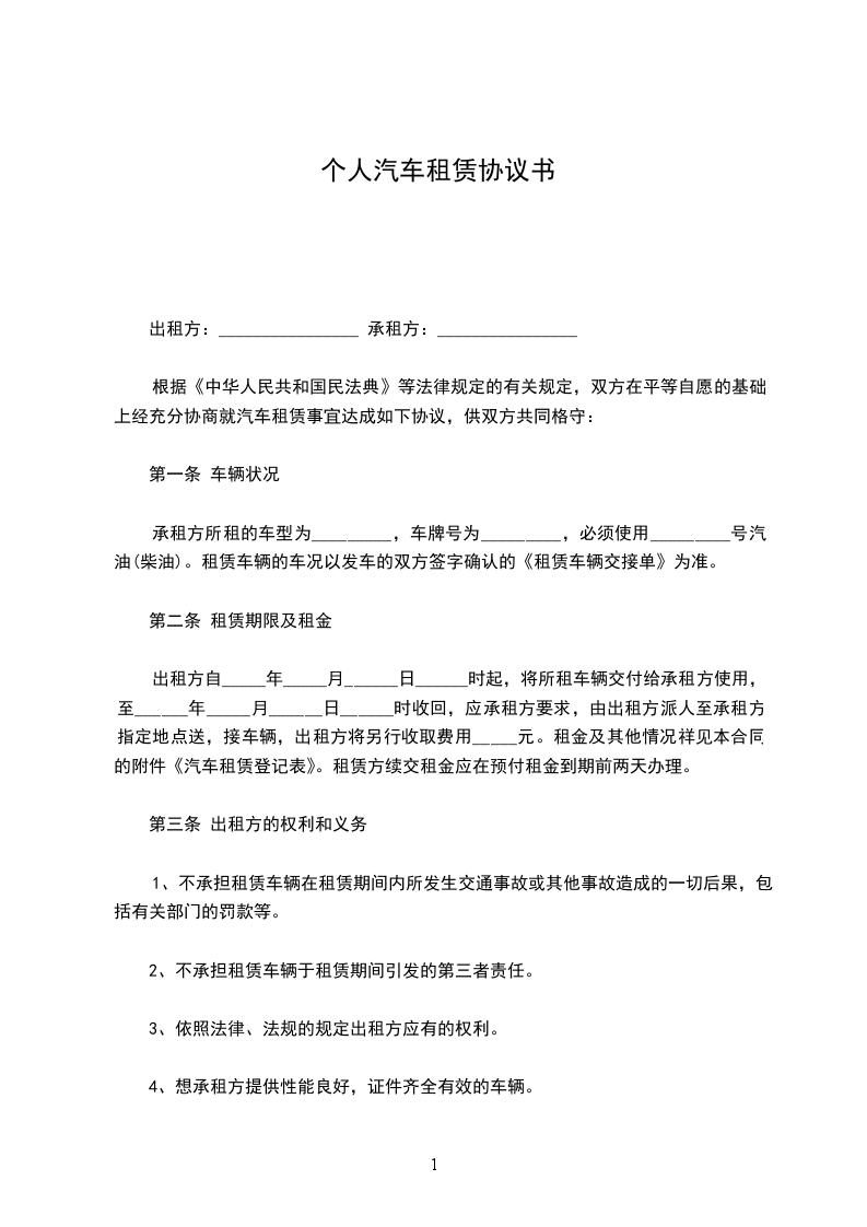一、乙方为甲方提供设备齐全、车况良好、运行安全可靠、证件齐全的车辆,车辆基本情况如下:车辆品牌: 车牌号: 车辆类型: