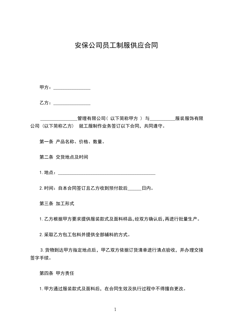 ________________管理有限公司( 以下简称甲方 ) 与___________服装服饰有限公司 (以下简称乙方) 就工服制作业务签订以下合同,共同遵守。