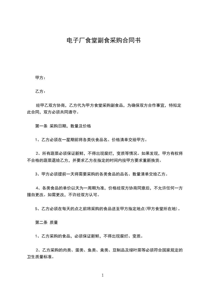 经甲乙双方协商,乙方代为甲方食堂采购副食品,为确保双方合作事宜,特拟定此合同,双方必须共同遵守。