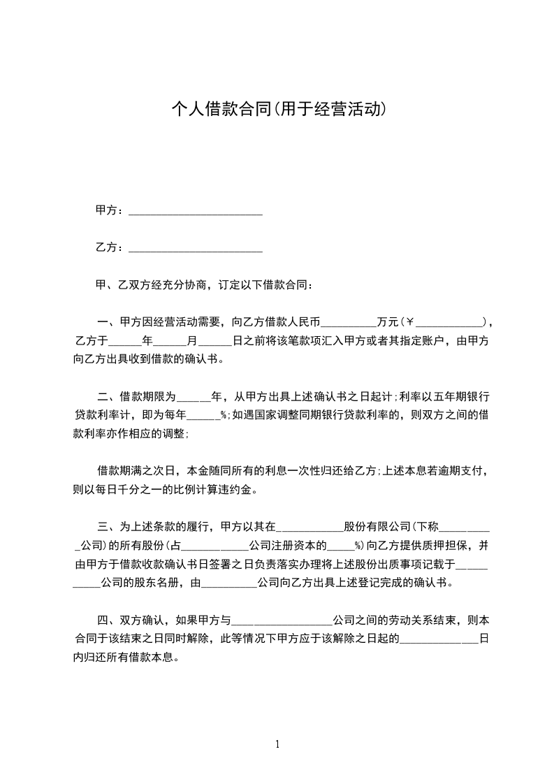 借款方为扩大经营,向出借方借款,经双方友好协商,特订立本合同,以昭信守。