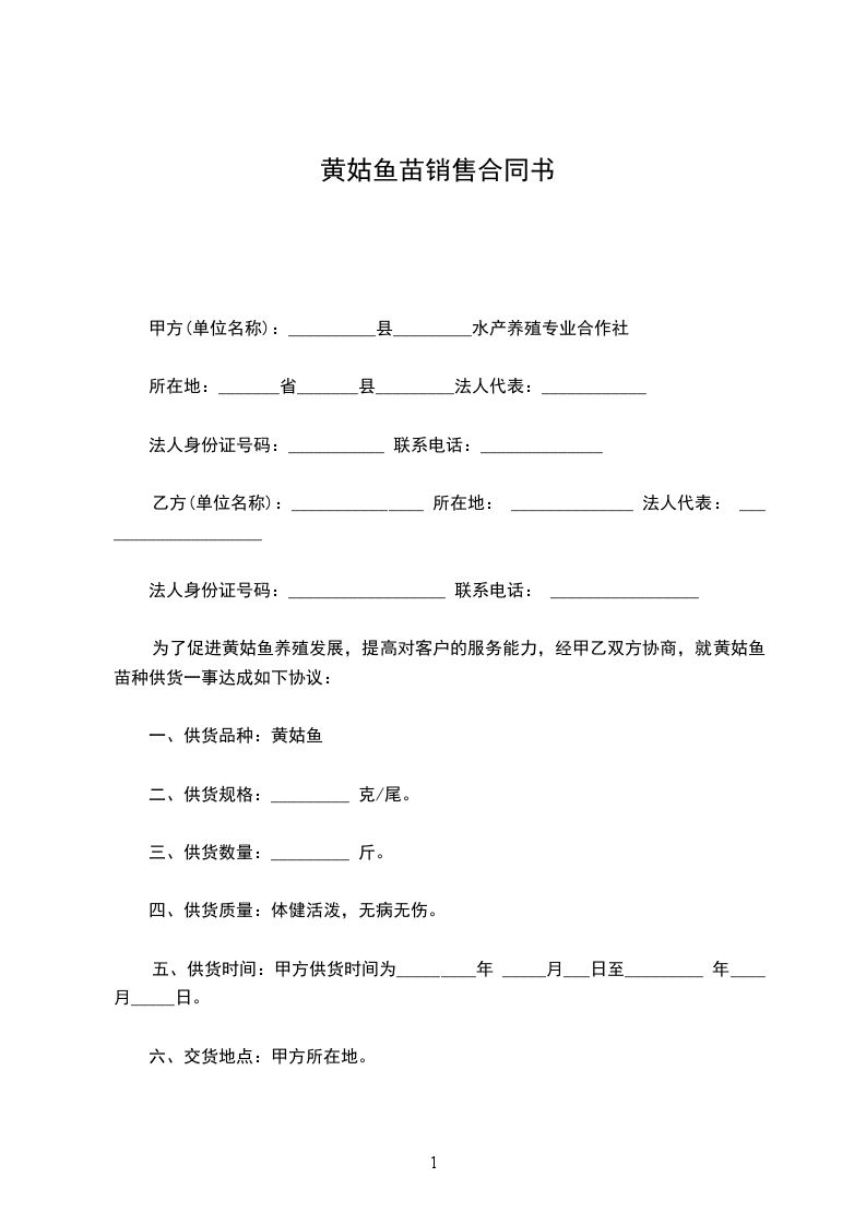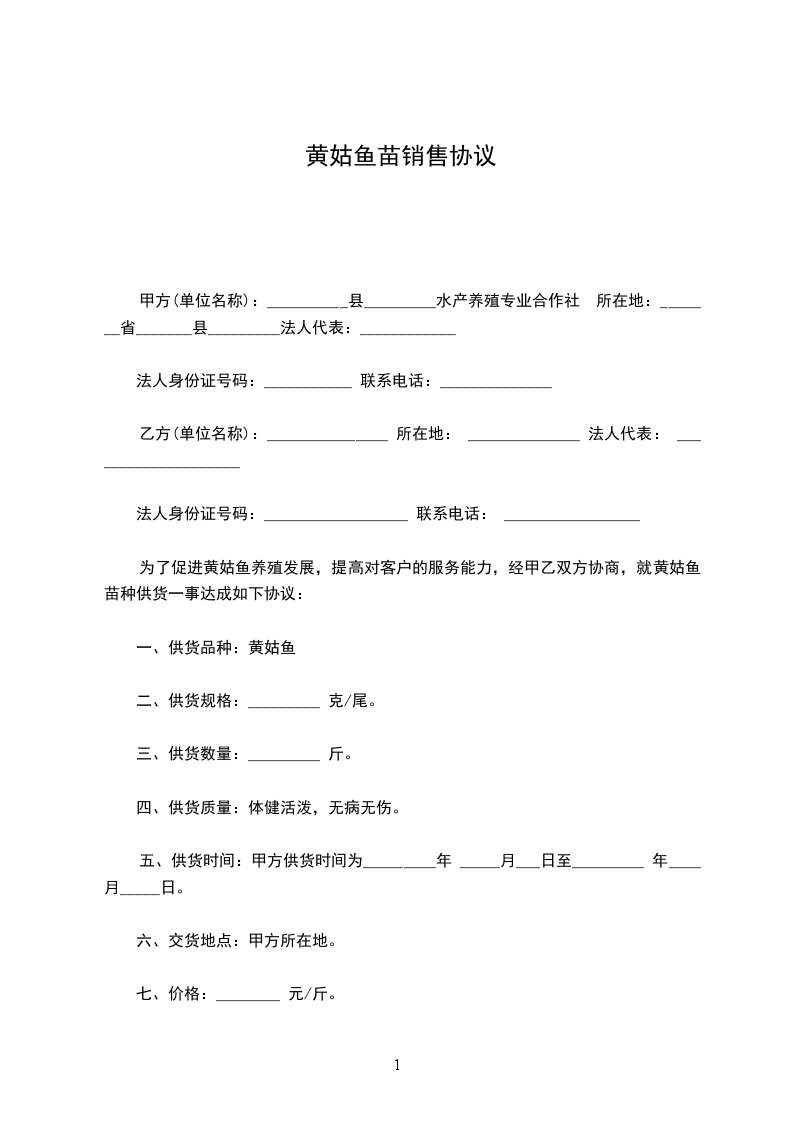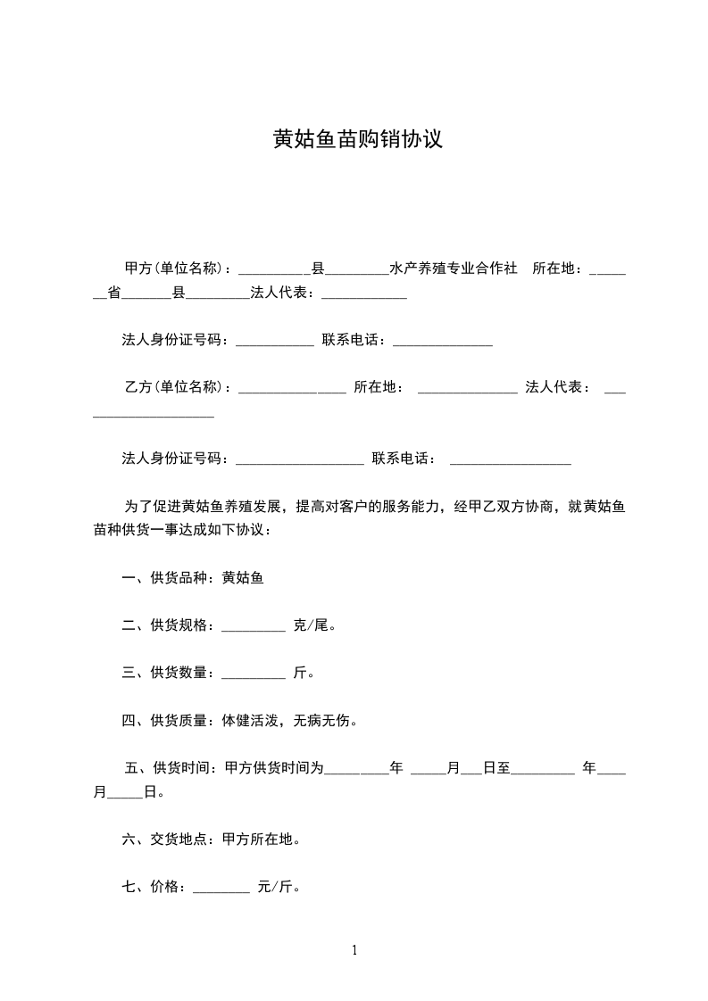 为了促进黄姑鱼养殖发展,提高对客户的服务能力,经甲乙双方协商,就黄姑鱼苗种供货一事达成如下协议: