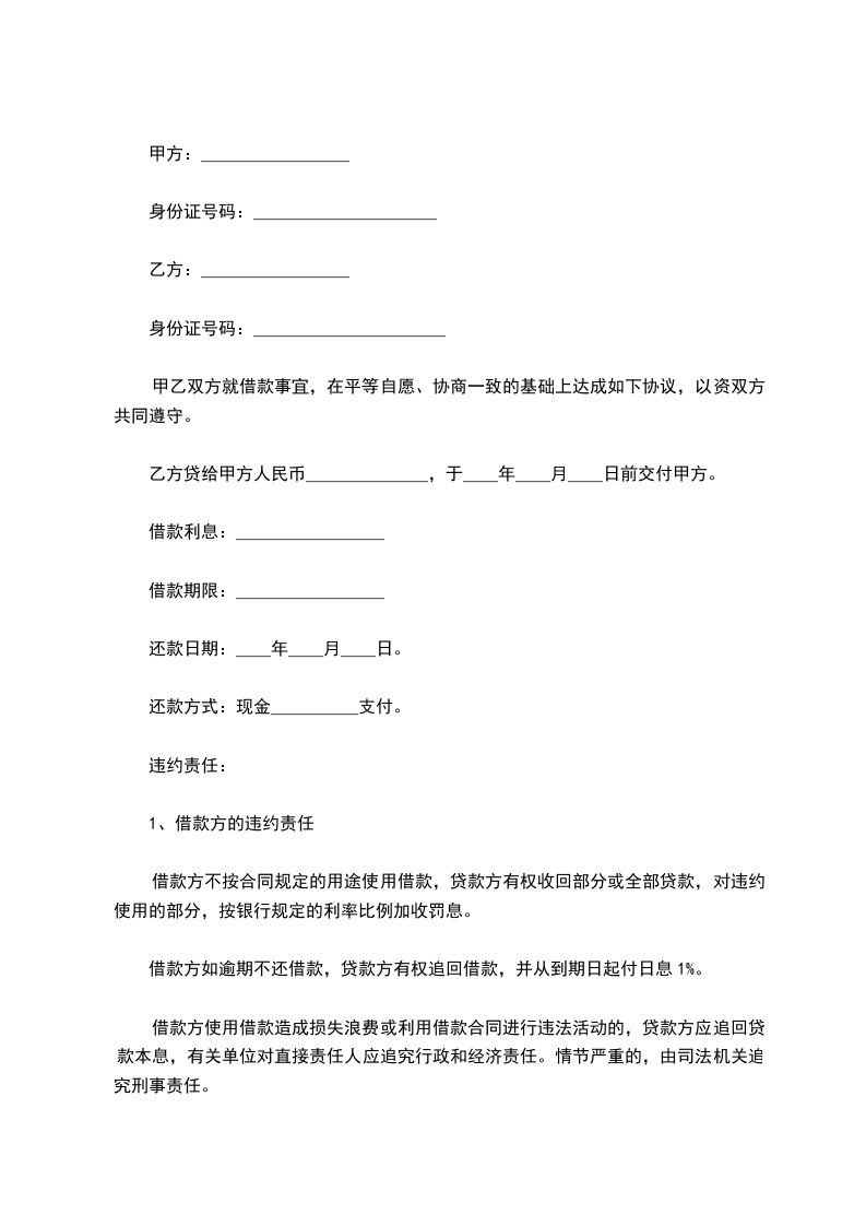 甲方(借款人): 身份证号码: