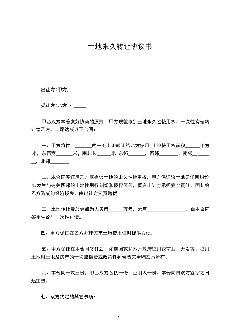 经各方友好协商,本着平等、自愿、有偿、诚实信用原则,就土地转让事宜达成协议如下: