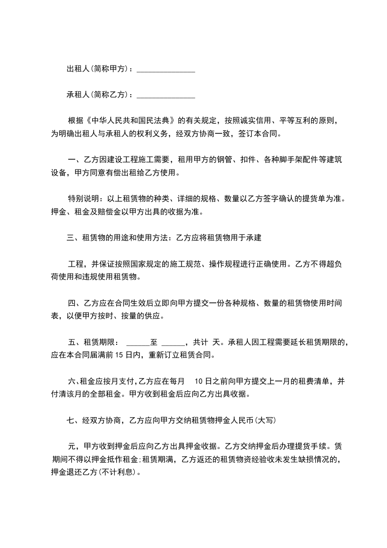 第七条、押金:架管押金每米元,扣件每套元,丝杠每支元。