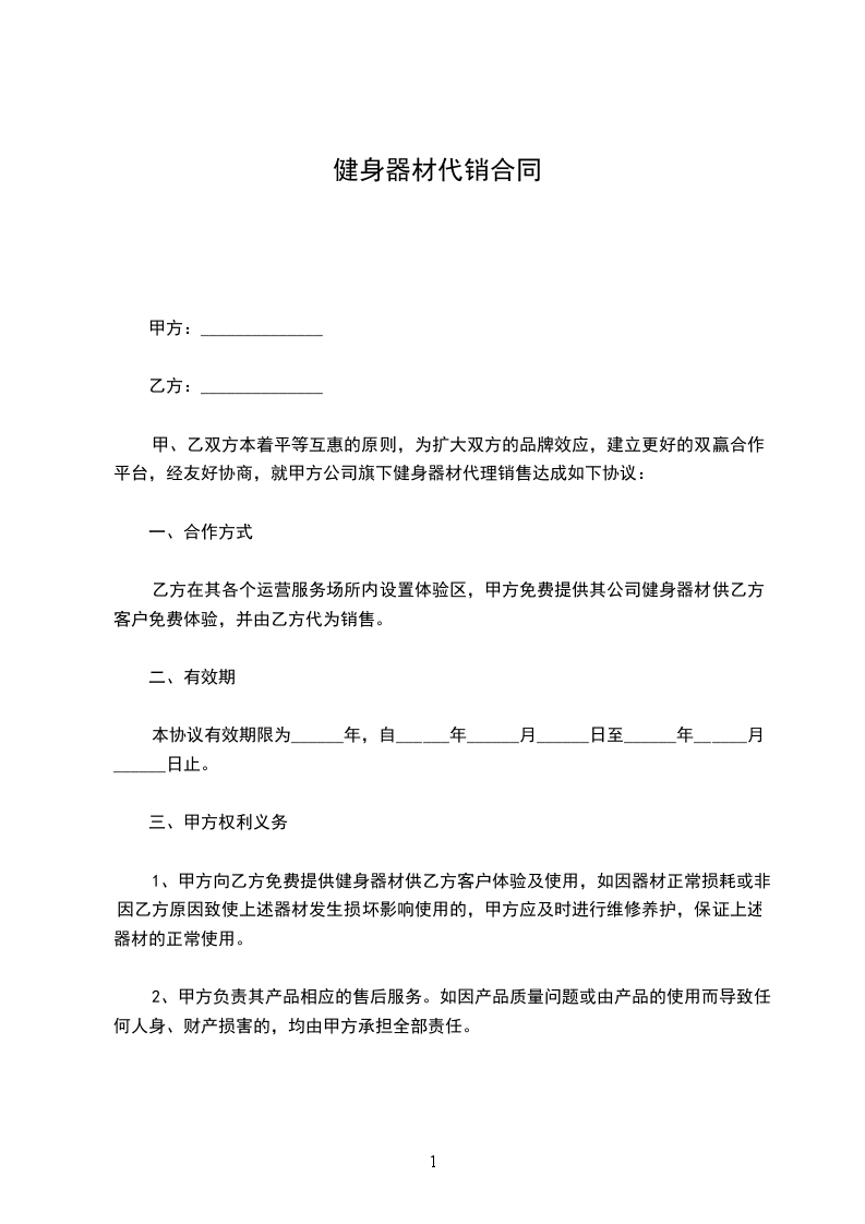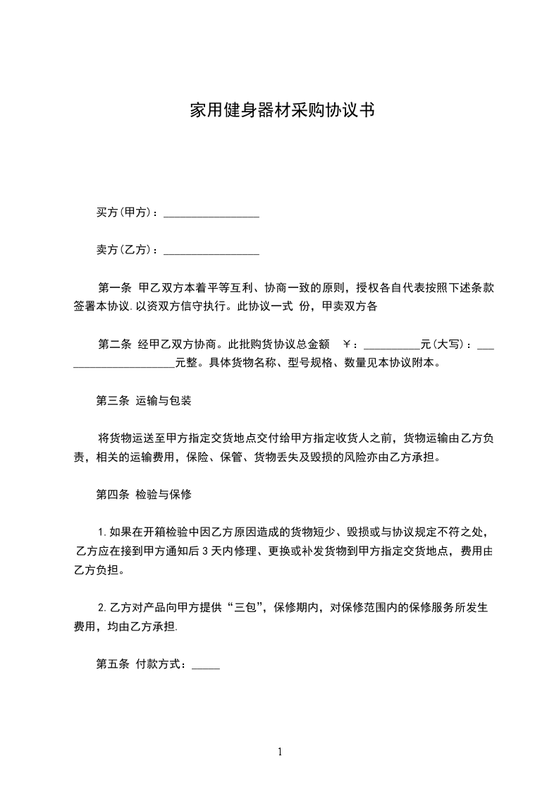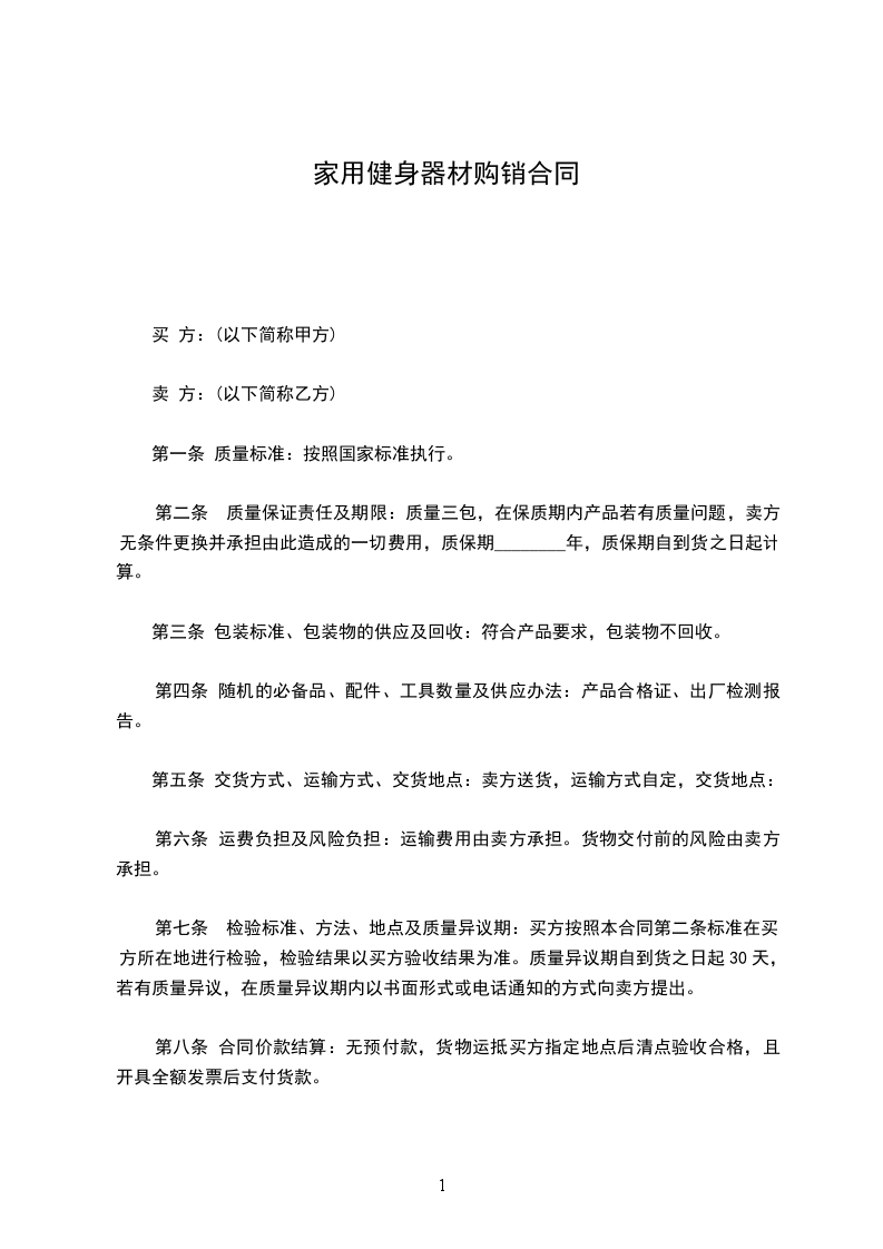 家用健身器材购销合同