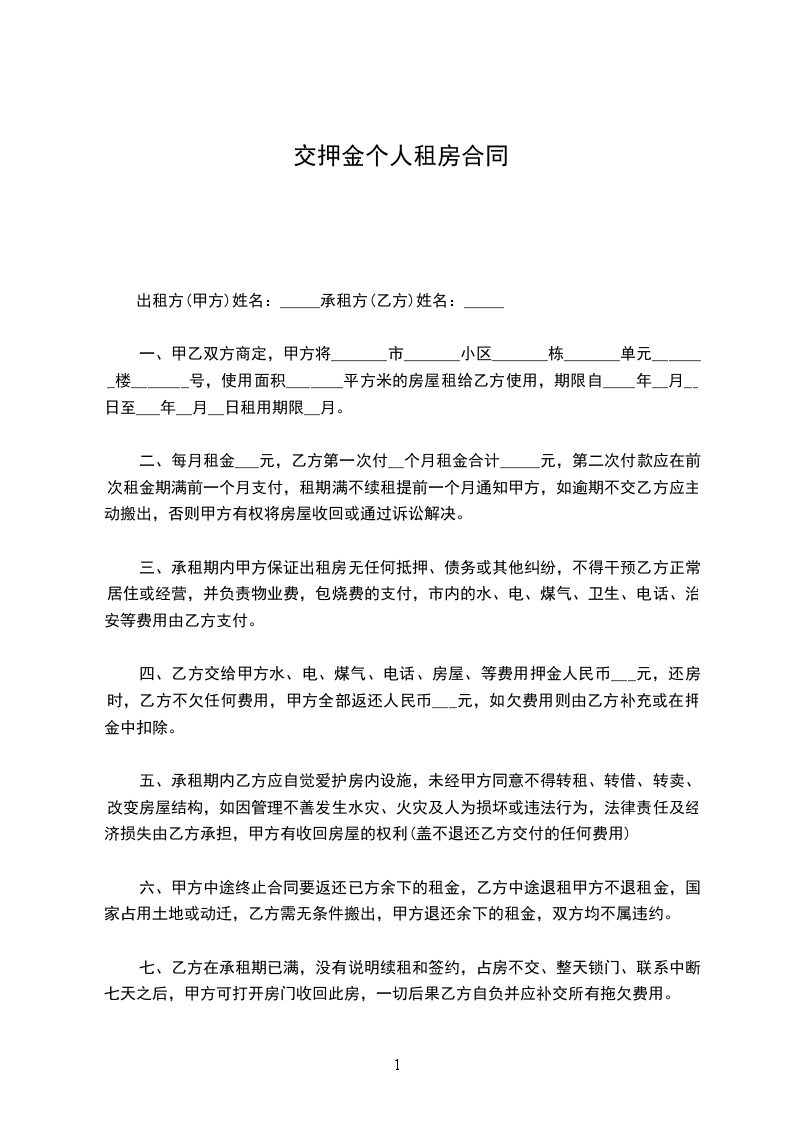 六、租赁期间,任何一方提出终止合同,需提前1个月书面通知对方,经双方协商后签订终止合同书。若一方强行中止合同,须向另一方支付违约金______元。