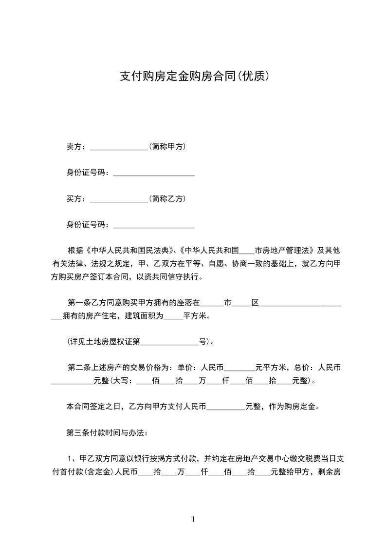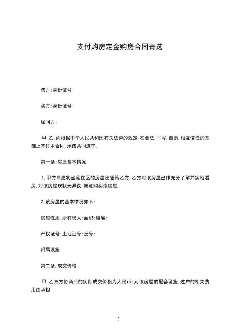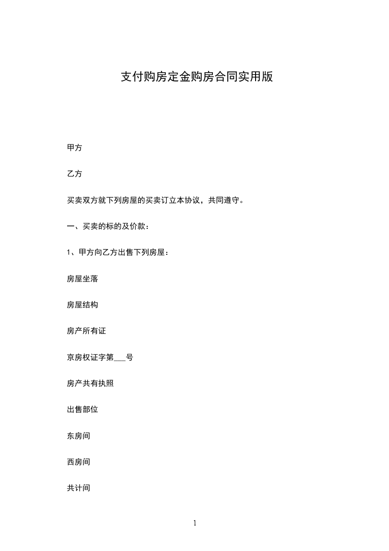 1.签订本合同之日乙方即支付甲方购房定金人民币_____元整。